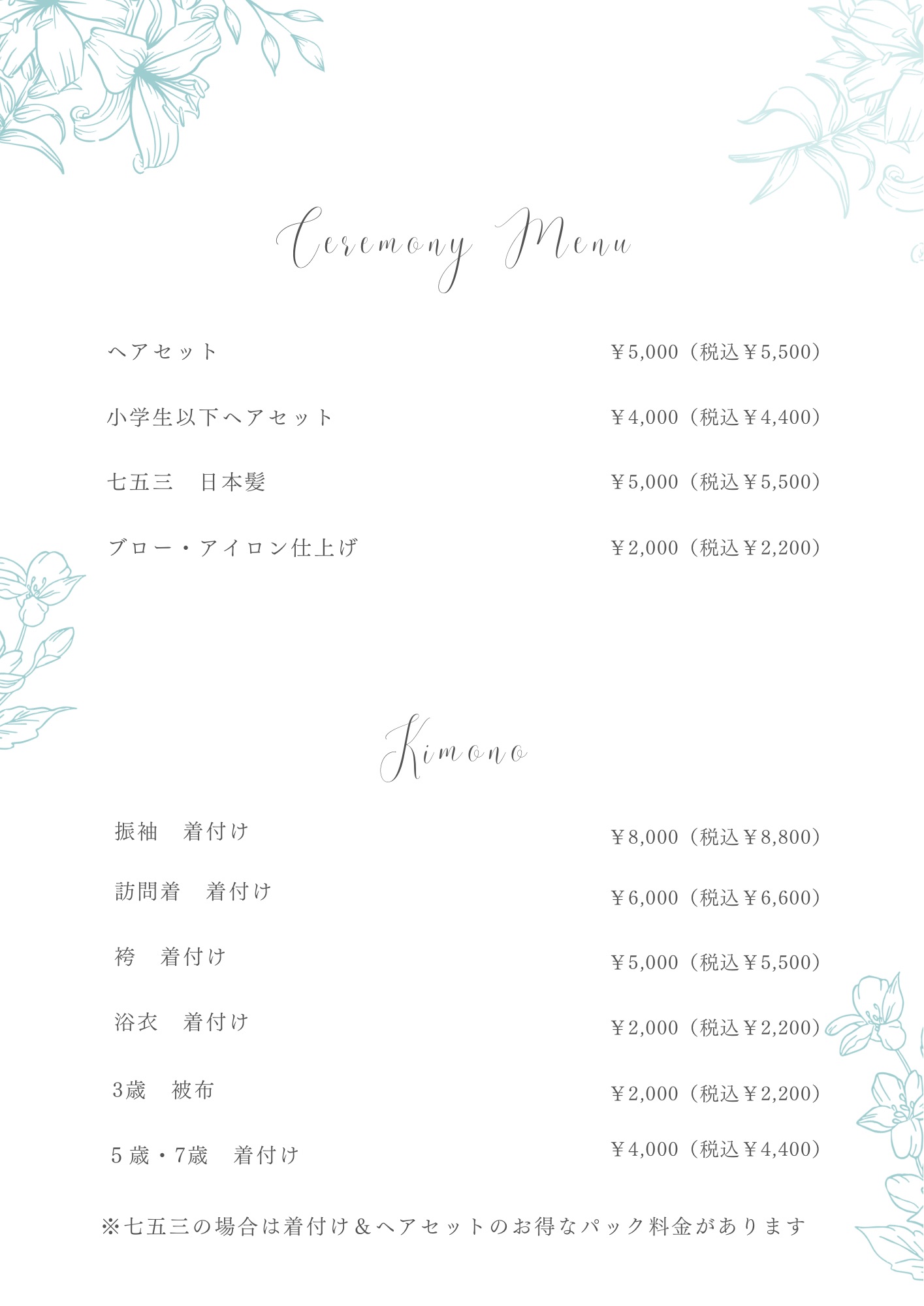 七五三パック料金👘